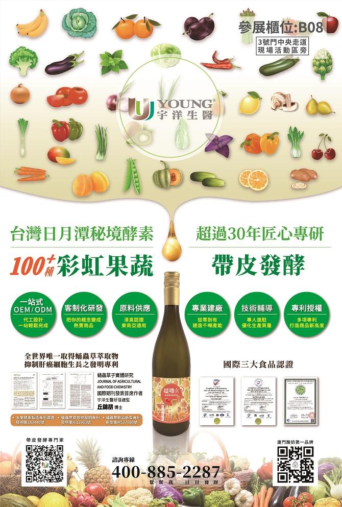 宇洋生醫深耕酵素超過30年,一直以來於幕後專心致力於發酵技術研發及解決問題,首次參展希望能在酵素展會中傾聽企業客戶與消費者的心聲,更期望同時能與酵素同業及酵素產業鏈各廠商進行交流學習,誠摯邀請各方關注酵素產業的企業客戶與消費者到場參觀指教。