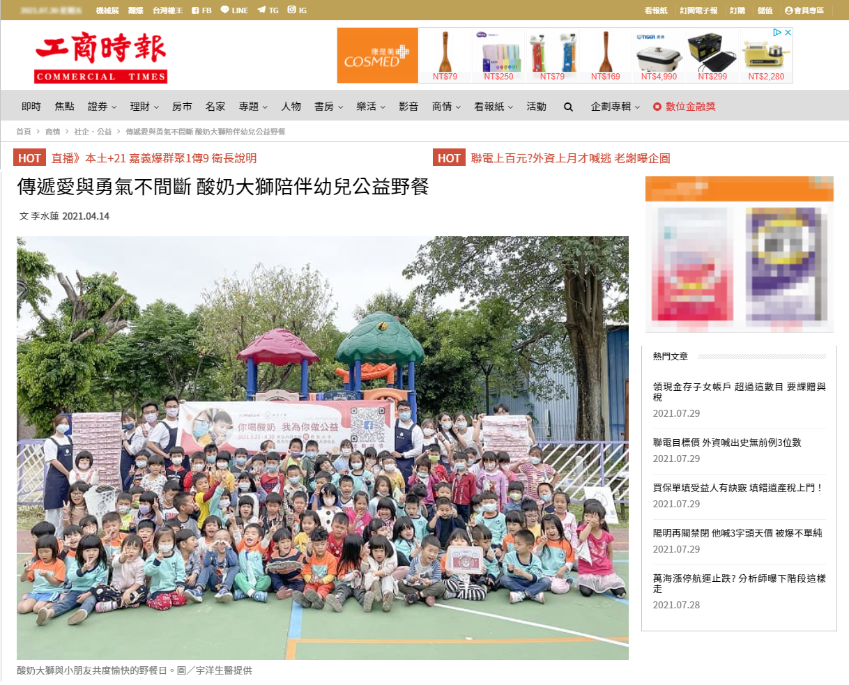 工商時報報導-傳遞愛與勇氣不間斷 酸奶大獅陪伴幼兒公益野餐