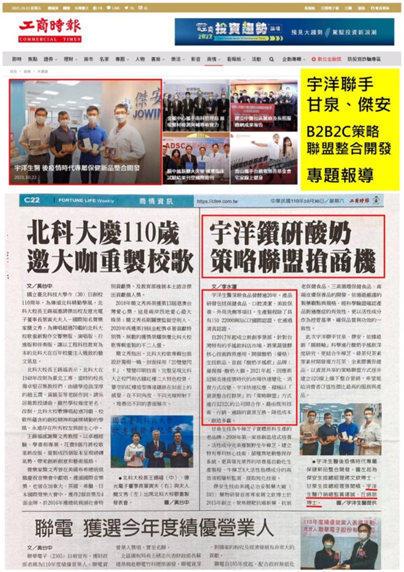 如何在後疫情時代提升自我保護力與新冠病毒長期抗戰,為民眾日常飲食、防疫保養的重要課題之一,宇洋聯手甘泉、傑安,依據最新「腸肺軸」(Gut-lung axis)科學進行酸奶手搖飲深度研究,更結合牛樟芝、綠茶兒茶素、薑黃等素材開發複方花茶、全素膠囊保健品,以資源共享的策略聯盟方式逐步建立O2O (Online To Offline)線上線下整合營銷,希望在此健康、經濟最變動的時期,給予消費者CP值性價比最高的服務與產品。